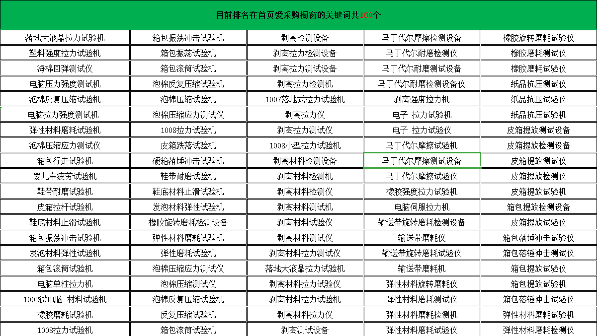 - 主要產品:落地大液晶拉力試驗機,箱包振蕩沖擊試驗機,剝離檢測設備,馬丁代爾摩擦檢測設備