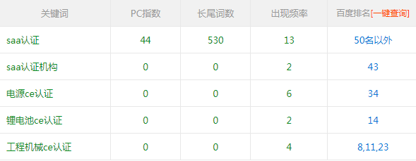 • 服務效果:因為興元電子可以做的認證服務有很多,我們搜集和分析搜索數據之后,通過與客戶的溝通選擇兩個最主要的,利潤比較高的認證服務項目進行優化推廣,經過幾個月的時間,板多個關鍵詞優化到首頁,并且長期保持穩定,持續帶來流量和點擊,帶來咨詢。