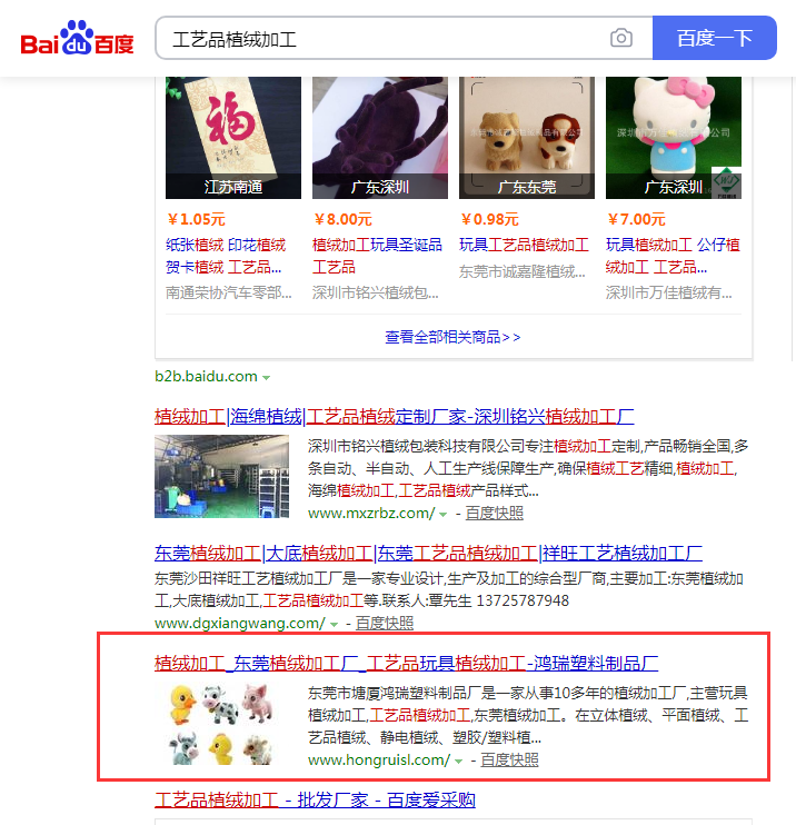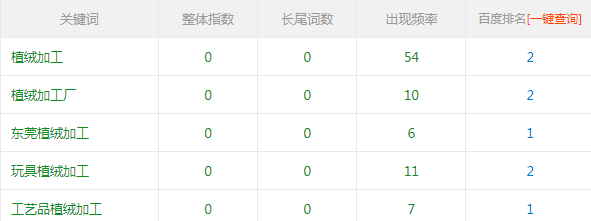 • 服務(wù)效果:鴻瑞塑膠主要優(yōu)化關(guān)鍵詞本來是4個(gè),通過技術(shù)專員的操作,3個(gè)月內(nèi)把包括最主要的“植絨加工”在內(nèi)的近20個(gè)關(guān)鍵詞優(yōu)化到了首頁,網(wǎng)站優(yōu)化效果讓客戶滿意。