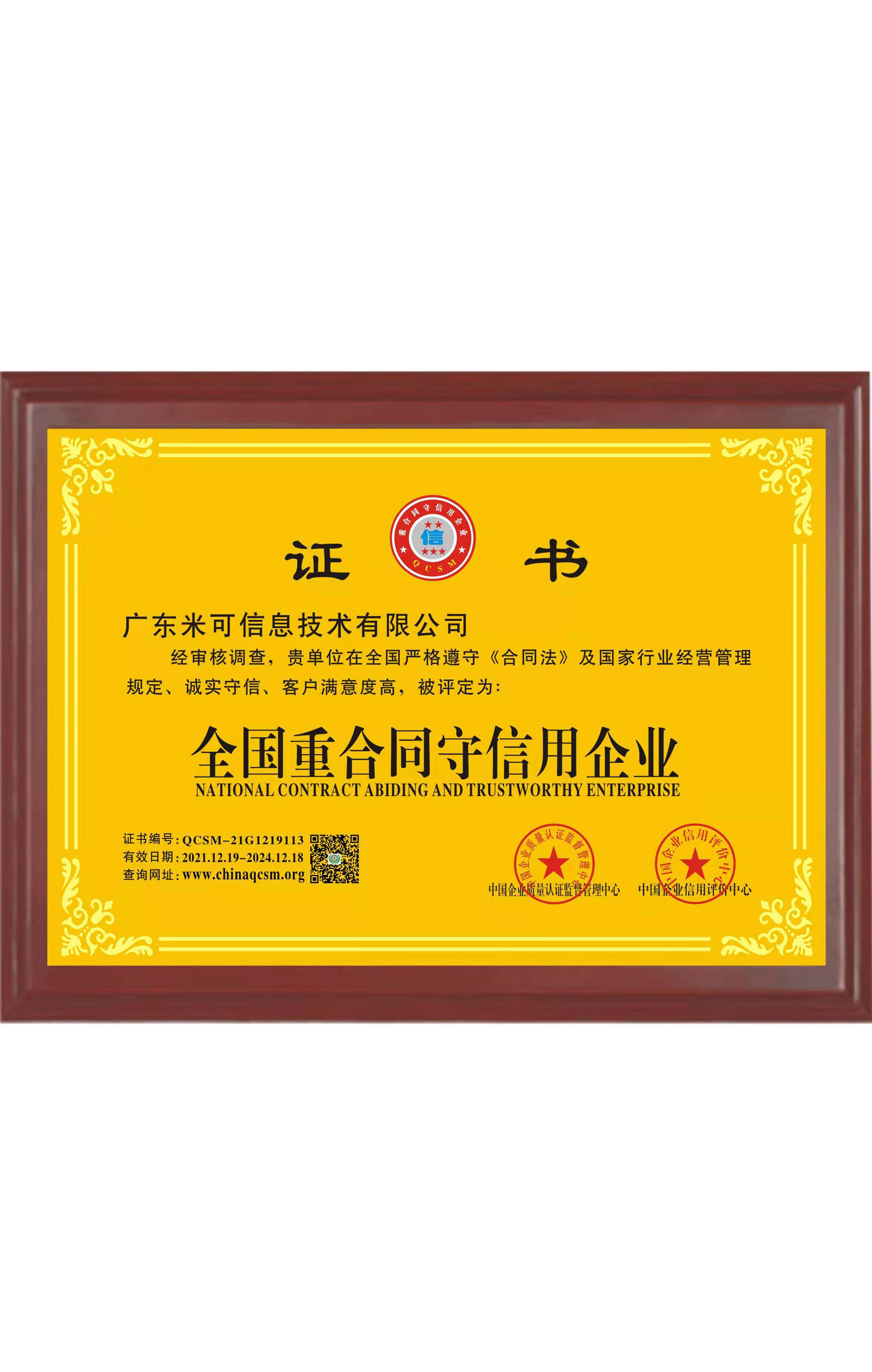 全國重合同守信用企業