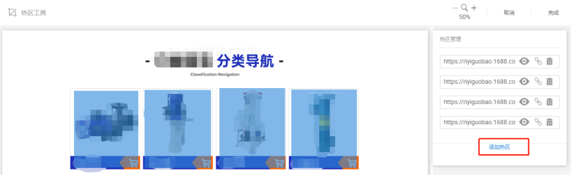 (3)熱點(diǎn)圖,和PC端裝修一樣,鏈接自己店鋪的分類地址或產(chǎn)品地址