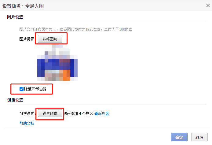 2、全屏大圖——選擇圖片——勾選隱藏底部邊框,如何想在圖片上添加鏈接,可添加熱區(qū)