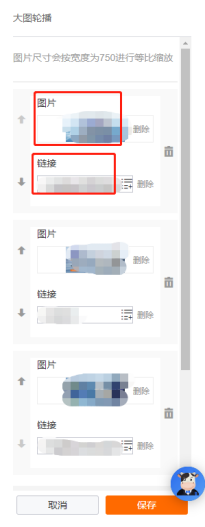(2)大圖輪播,一般是3張海報(bào)圖,同理在圖片空間里選擇圖片和想要鏈接的地址