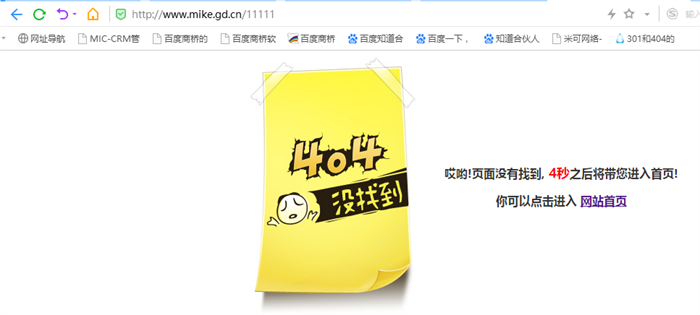 如圖,我們在首頁網址后面隨便敲入一些不存在的數字或字母,提示你這個頁面不存在點擊返回首頁或者等待幾秒返回網頁返回來的頁面就是404頁面