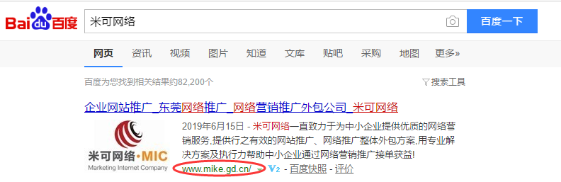 3.然后輸入“米可網絡”的網址,之后,就會放回一個數值。