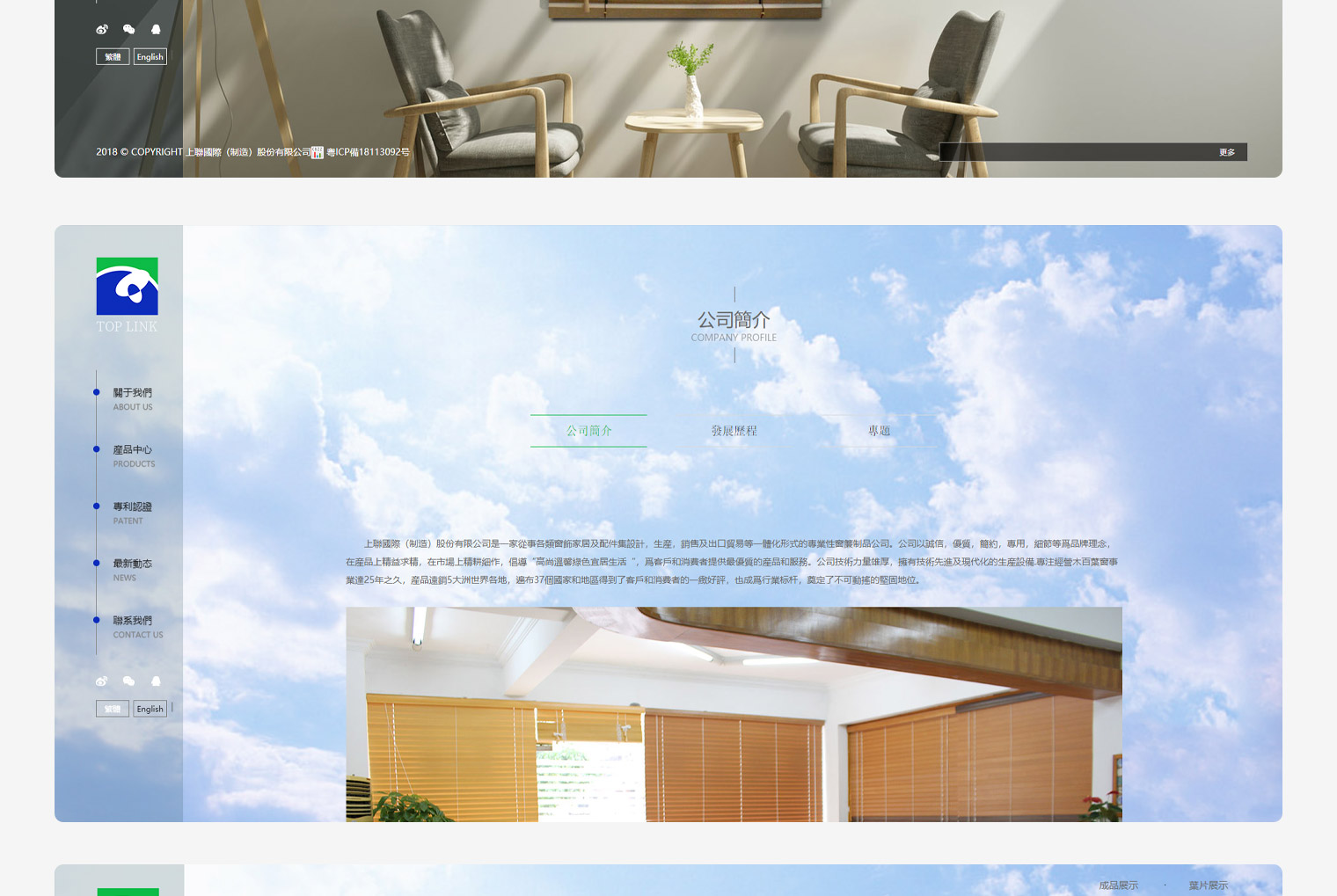 上聯國際(制造)股份有限公司的品牌網站通過創意的設計,展示這一家從事各類窗飾家居及配件集設計,生產,銷售及出口貿易等一體化形式的專業性窗簾制品公司的特點。