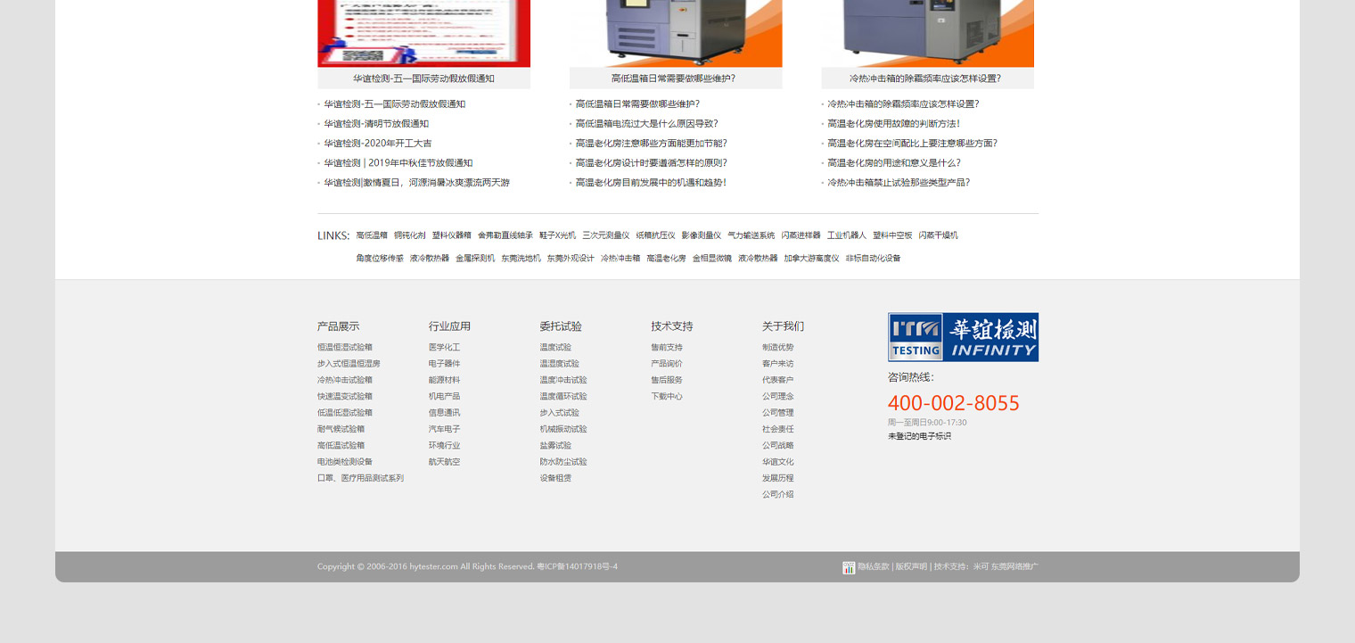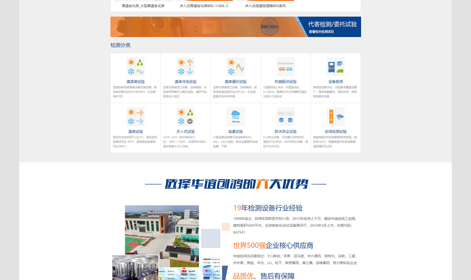 華誼檢測交易代碼:663541,集研發(fā)、生產(chǎn)、銷售于一體,高低溫箱、高溫老化房、冷熱沖擊箱、恒溫恒濕試驗箱,網(wǎng)站建設(shè)以營銷推廣為主,結(jié)合華誼檢測行業(yè)定位:營銷、品牌、質(zhì)量三大需求,網(wǎng)站設(shè)計上要突出公司品牌形像,又要解決營銷問題,通過網(wǎng)絡(luò)獲取客戶詢盤,網(wǎng)站內(nèi)容布局解決了客戶需求問題。