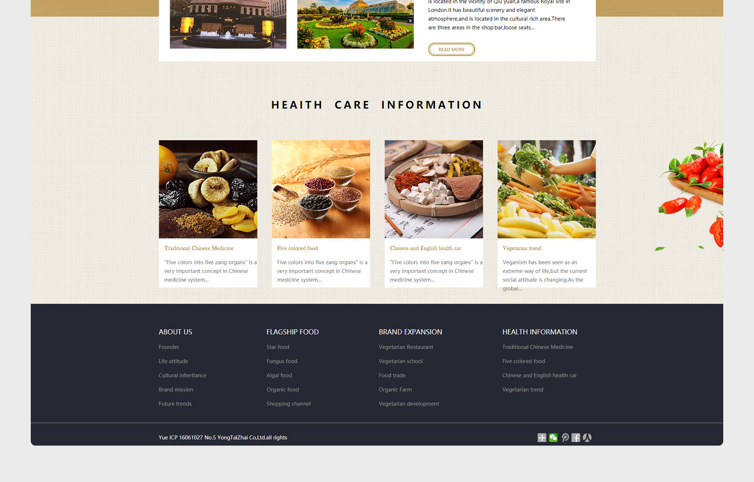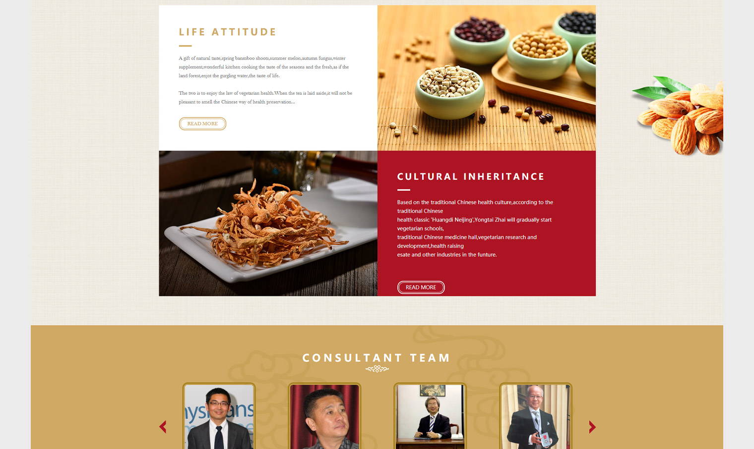 永泰齋英國素食餐飲連鎖品牌、通過網站傳遞企業文化及飲食理念,網站設計結合永泰齋整理VI體系進行色調搭配,網站細節空白區域融合了食材的元系,背景使用素雅布文,使整個網站突出了文化氣息"佛系",從整個網站中可以看出“佛系”的風格特色,VI風格及logo風格在整個網站中體現突出。