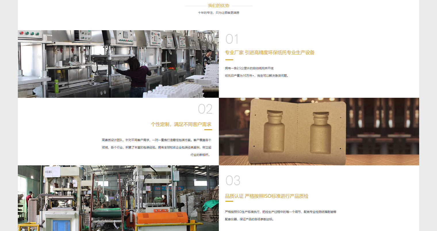 金超人-環保包裝整體解決方案服務商,通過網站建設提升公司品牌影響力及產品展示,結合包裝行業特性(嚴謹、工整、對稱)及客戶產品特點(環保、安全、美觀)對產品進行了獨立設計,每款產品結合定位進行獨立營銷單頁設計,以突出產品的性能及優勢,整個頁面設計獨具特色。
