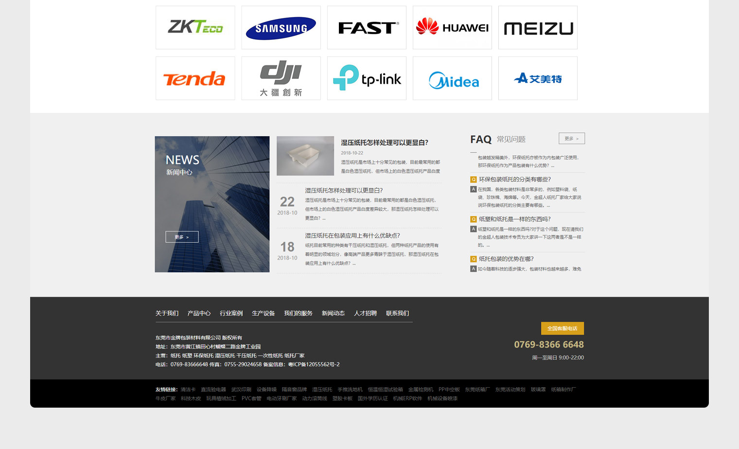 東莞市金牌包裝材料有限公司,成立于2003年,是一家環保包裝整體解決方案服務商,旗下注冊金超人品牌。集團總部位于中國東莞,自成立以來基于"環保、安全、美觀"的理念,為客戶產品賦予新的生命力與價值,通過不斷努力,現旗下共設有六家生產基地。我們的業務范圍是為消費電子、物流、煙酒、化妝品、食品等行業客戶提供專業的、有競爭力的紙托包裝產品。