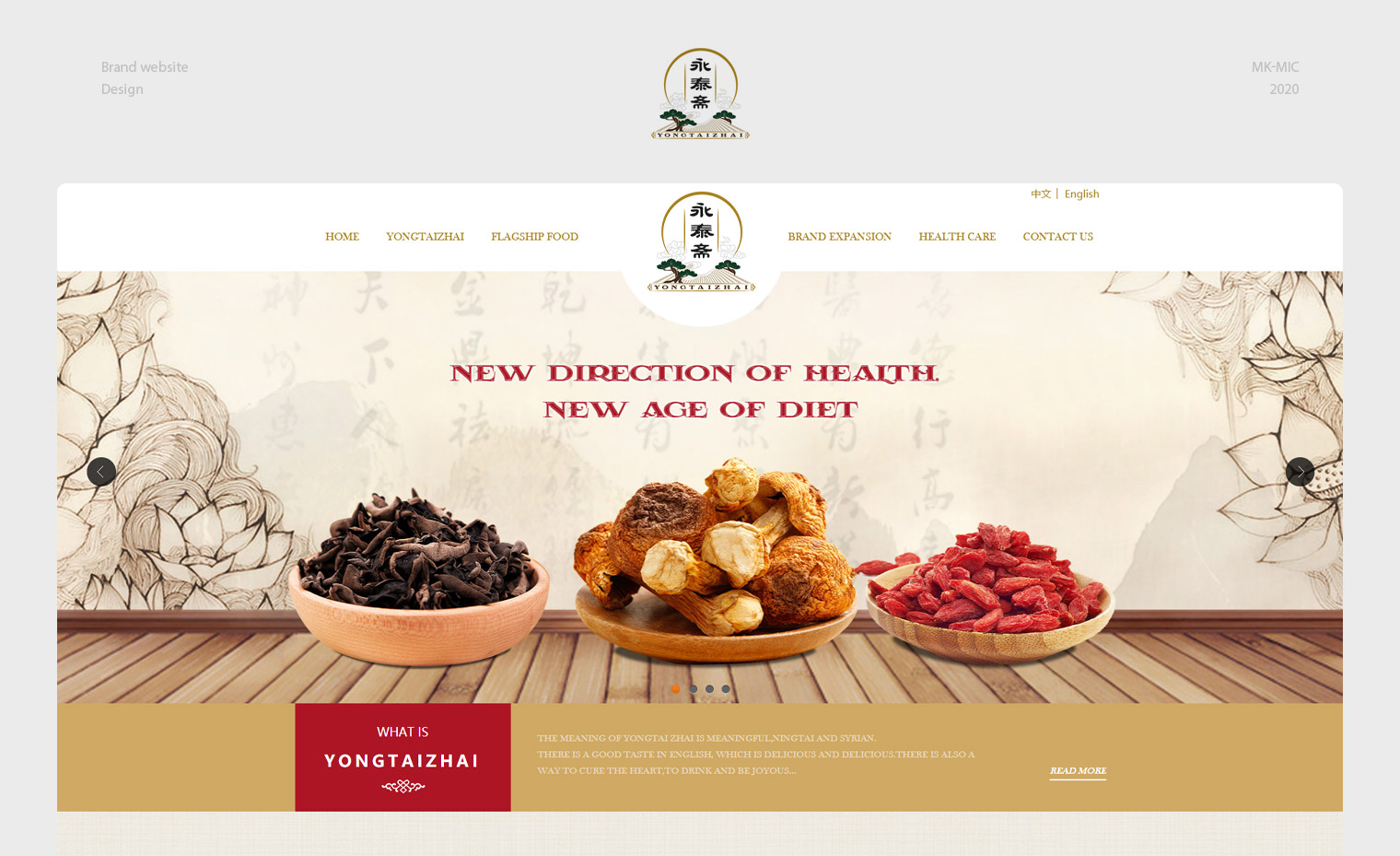 永泰齋英國素食餐飲連鎖品牌、通過網站傳遞企業文化及飲食理念,網站設計結合永泰齋整理VI體系進行色調搭配,網站細節空白區域融合了食材的元系,背景使用素雅布文,使整個網站突出了文化氣息"佛系",從整個網站中可以看出“佛系”的風格特色,VI風格及logo風格在整個網站中體現突出。